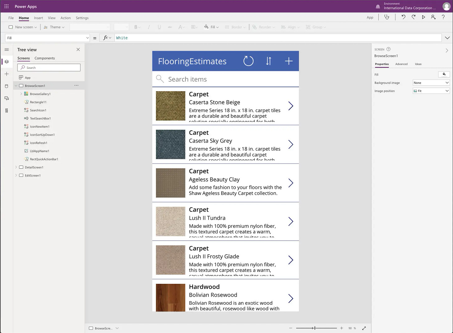 A Canvas App is an application built in a low-code studio with a drag and drop interface (i.e if you need a button on a screen, you drag and drop it where you want it) that uses a simplified spreadsheet formula language (called PowerFx) instead of traditional programming languages (such as JavaScript or C#). The studio looks as follows to the developer;
